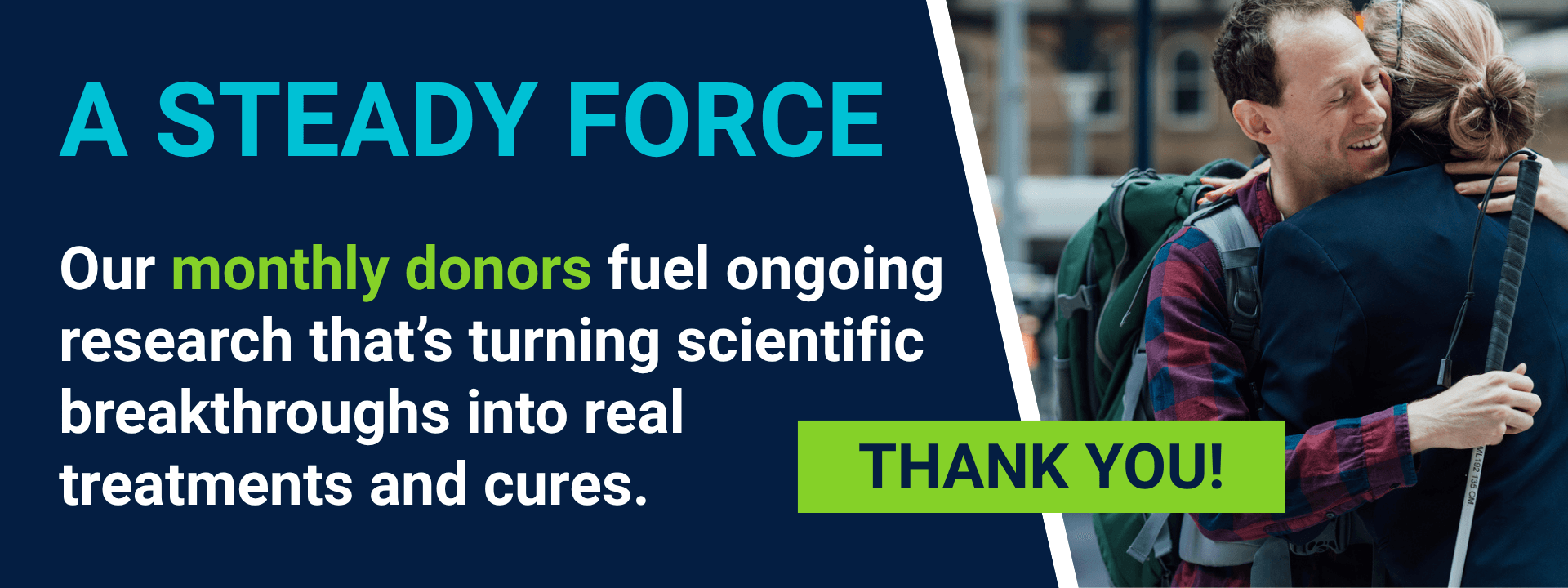 Join our mission to keep funding research to drive treatments and cures for blinding diseases! Thank you.
